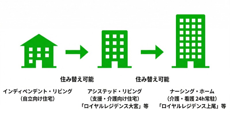 当社はお客様のニーズに合った施設を実現させるため、海外発祥のネットワーク型CCRCを取り入れ最高のサービス提供を目指しております。 また、今後も各地域エリア別に展開していきます。