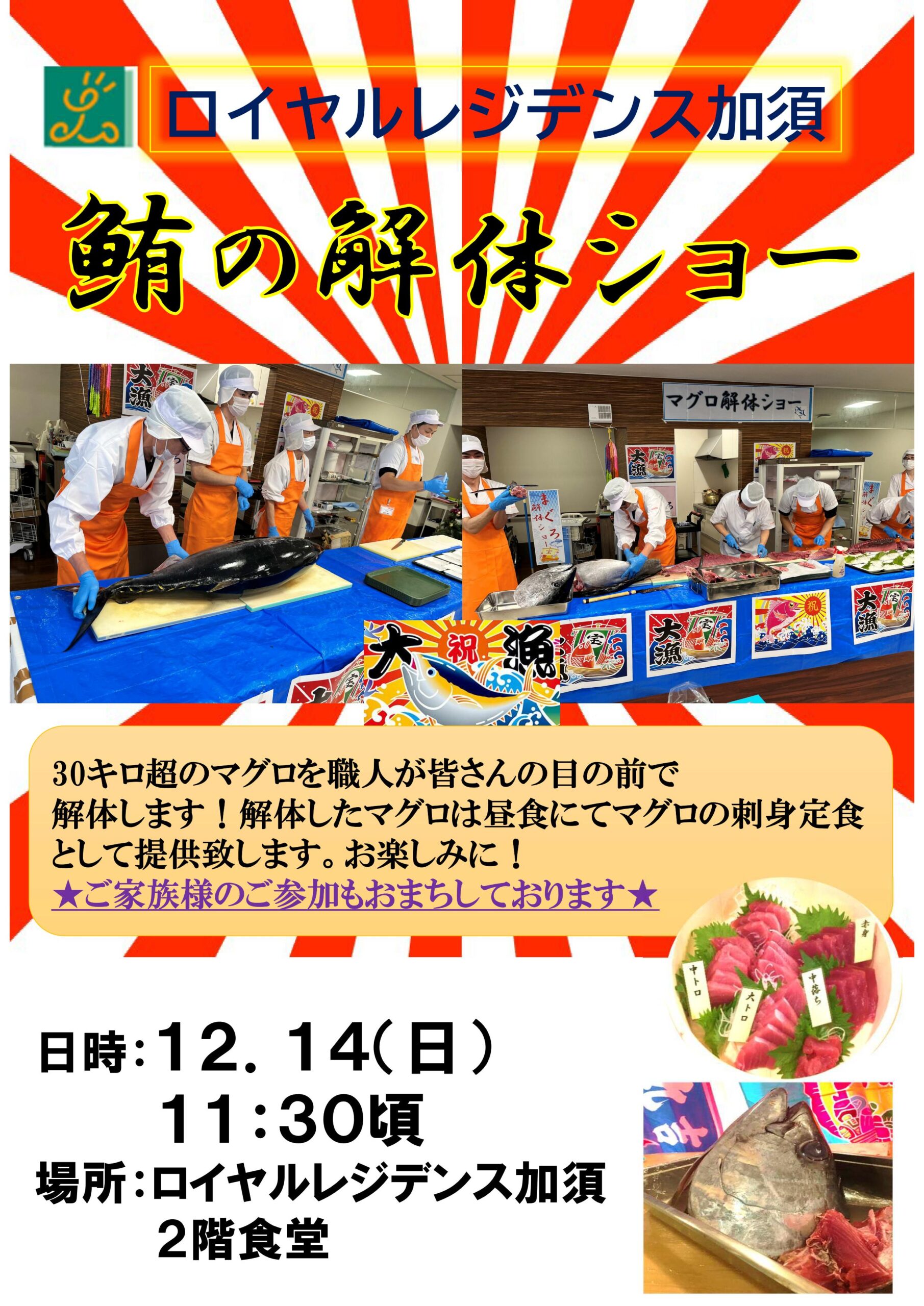 ロイヤルレジデンス加須の一大イベントである『マグロ解体ショー』を12月14日(日)に開催いたします!