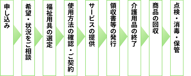 福祉用具貸与とは要支援、要介護の状態になったときにも、できる限り居宅でその能力に応じて、自立した日常生活を営めるように、利用される方の希望・状況・環境を踏まえて適切な福祉用具の選定の援助・取付け・調整等を行うサービスを言います。